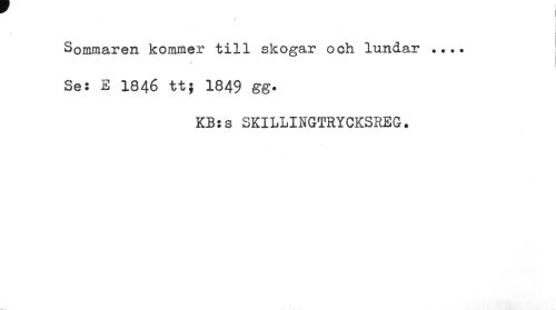 //// i //// Sommaren kommer till skogar och lundar //// j //// Se: E 1846 tt; 1849 gg' //// KB:s SKILLINGTRYCKSREG. ////