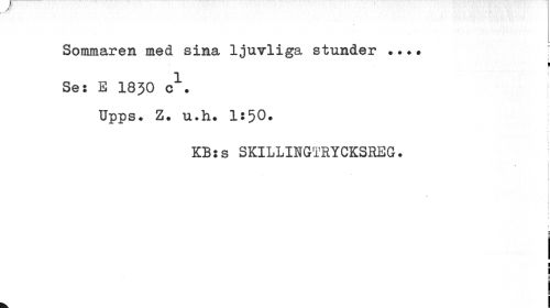//// Sommaren med sina ljuvliga stunder •••• [ //// i //// Ses E 1830 c . //// ! //// Upps. Z. u.h. 1:50. //// KBss SKILLINGTRYCKSREG. //// i l //// * //// 1 //// t i //// I //// | //// m //// c //// I ////