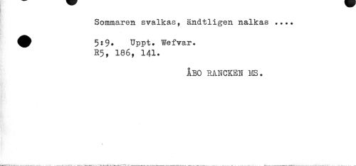 //// Sommaren svalkas, ändtligen nalkas ... ^ 5:9. Uppt. Wefvar. //// R5, 186, 141. //// ÅBO RANCEE1 MS. //// » ////