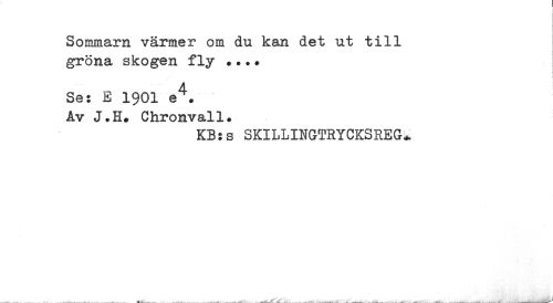 //// Sommarn värmer om du kan det ut till gröna skogen fly .. ? ? //// Se: E 1901 e4. Åv J.H» Chronvall* //// KB:s SKILLINGTRYCKSREG* ////