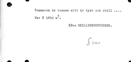 //// Sommaren är kommen allt är tyst och still ... //// Se: E 1894 u5. //// KB:s SKILLINGTRYCKSREG. ////