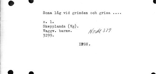 //// Sona låg vid grinden och grisa //// Sm 1 ? //// Skepplanda (Vg). //// Vaggv. barnv. //flJt $79 //// 3299- //// IEGH. ////