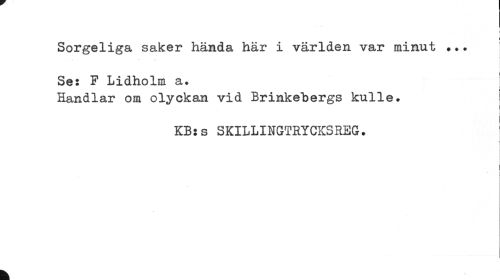 //// = //// Sorgeliga saker hända här i världen var minut ••• //// [ //// i //// Ses F Lidholm a. //// Handlar om olyckan vid Brinkehergs kulle• //// KBs s SKILLINGTRYCKSREG. ' //// j //// k ////