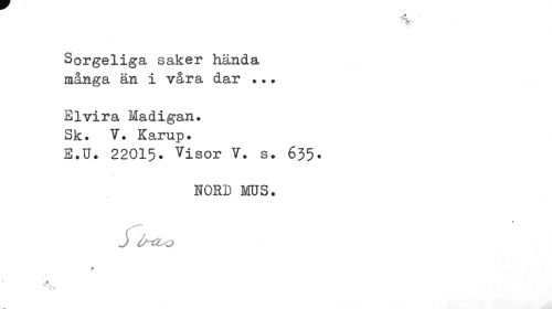 //// ' //// "s //// Sorgeliga saker hända många än i våra dar ?.. //// Elvira Madigan. Sk* V. Karup. //// E.U. 22015* Visor v. s. 635. //// NORD MS. //// J irtto //// * //// X ////