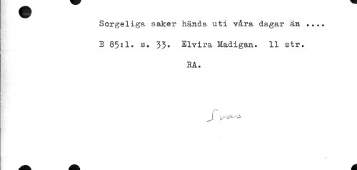 //// Sorgeliga saker hända uti våra dagar än ... //// B 85:1* s. 33* Elvira Madigan. 11 str. //// HA. //// 0 ////