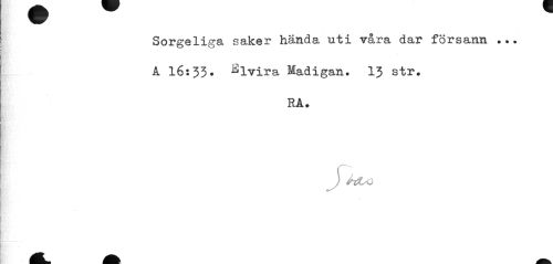 //// Sorgeliga saker hända uti våra dar försann ... A 16 s 33• ^Ivira Madigan. 13 str. //// RA. //// J) Mxj ////