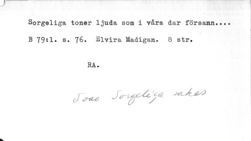 //// tf //// ¦ //// Sorgeliga toner ljuda som i våra dar försann... B 79*1. s. 76. Elvira Madigan. B str. //// RÅ. //// j ^ J^^) * w ^ ////