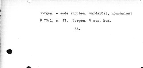 //// Sorgen, - sade snobben, vårdslöst, nonchalant B 7^:1, s. 43. Sorgen, 5 str. kom. //// RÅ. //// s ////