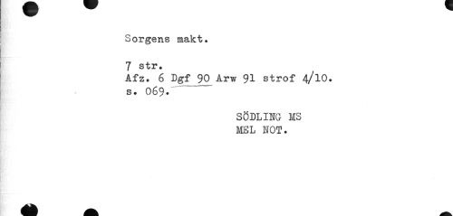 //// Sorgens makt. 7 str. //// Åfz. 6 Dgf 90 Arw 91 strof 4/l0. s. 069. //// SÖDLING MS MEL NOT. ////
