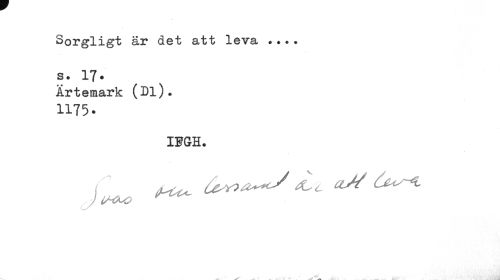 //// Sorgligt är det att leva ... s. 17. //// Ärtemark (Dl). //// 1175. //// IFGH. ////
