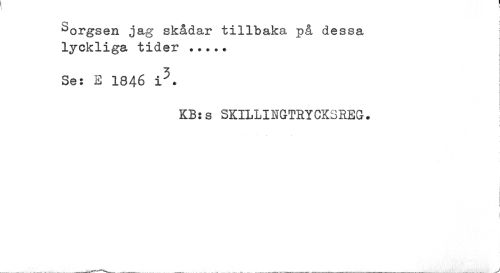 //// Sorgsen jag skådar tillbaka på dessa I //// lyckliga tider ... //// Se: E 1846 i5. //// KB:s SKILLINGTRYCKSREG. //// I //// ! ////