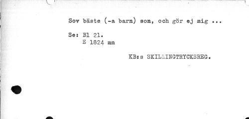 //// / //// Sov bäste (-a barn) son, och gör ej mig ... //// Ses Bl 21. //// B 1824 mm //// KB:s SKILLINGTRYCKSREG. //// 4 ////