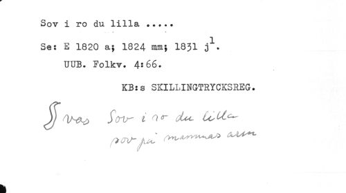 //// Sov i ro du lilla ... //// ...»• H //// Se: E 1820 a; 1824 mm} 1831 3 . UUB. Folkv. 4:66. //// KB:s SKILLINGTRYCKSREG. //// J/ /JW~ i Or cUo Usll^ //// \ ////