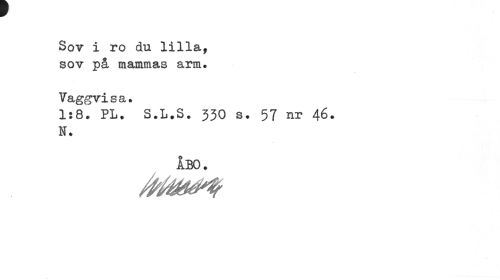 //// Sov i ro du lilla, sov på mammas arm. //// Vaggvi s a. //// 1:8. PL. S.L.S. 530 s. 57 nr 46. N. //// ÅBO. ////