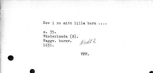 //// Ec' //// Sov i ro mitt lilla barn ... s. 55. //// Västerlanda (b). //// VFF. ////