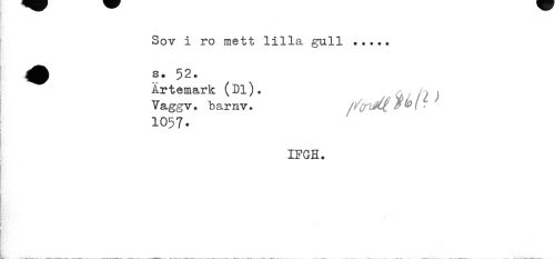 //// Sov i ro mett lilla gull ... //// ^^ Ärtemark (Dl). //// Vaggv. "barnv. //(nMi^^i - //// 1057» //// IFGH. ////