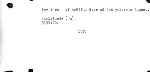 //// Sov i ro - vi träffas åter på den yttersta dagen.. //// Karlslunda (Sm). 3191:20. //// LUF. ////