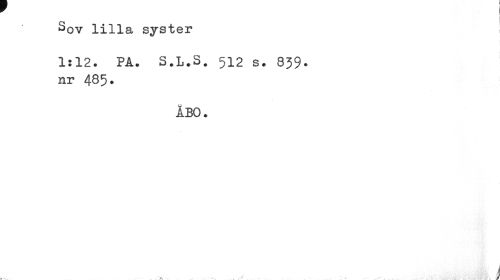 //// Sov lilla syster //// 1:12. PA. S.L.S. 512 s. 839-nr 485. //// ÅBO. //// ... . iU ////