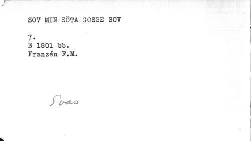 //// SOV MIN SÖTA GOSSE SOV //// J //// 7- //// B 1801 Vb. Franzén F.M. //// i i //// * ////