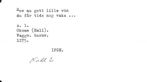 //// ^ov nu gott lille vän du får tids nog vaka ... //// s. !• //// Okome (Hall). Vaggv. barnv. //// 1275. //// IFGH. //// /VZxéC ////