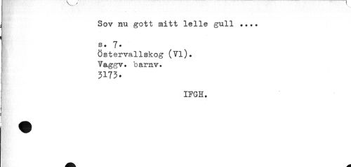 //// Sov nu gott mitt lelle gull ... s • 7* //// Östervallskog (Vi). Vaggv. barnv? //// 3173. //// IFGH. ////