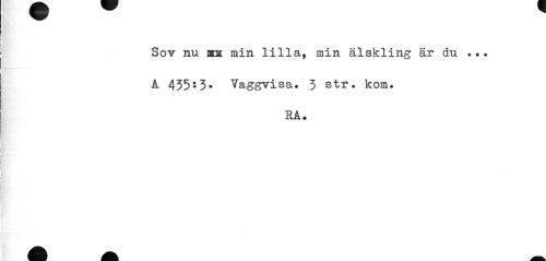 //// Sov nu ms. min lilla, min älskling är du ... A 435:3. Vaggvisa» 3 str. kom. //// RA. ////