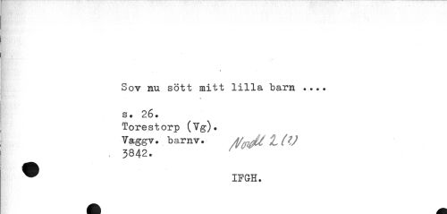 //// « //// « //// Sov nu sött mitt lilla barn •••• //// > //// s. 26. //// Torestorp (Vg). //// Vaggv. barnv. !¦(V //// . 3842. //// ® IFGH. ////