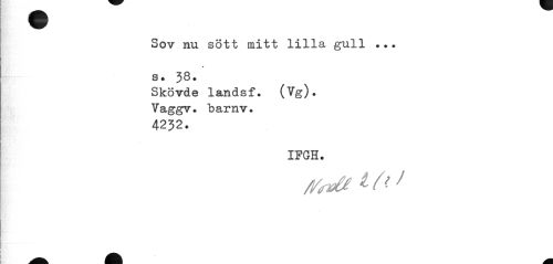 //// Sov nu sött mitt lilla gull ... //// 3. 38. //// Skövde landsf. (Vg). Vaggv. barnv. 4232. //// IFGH. ////