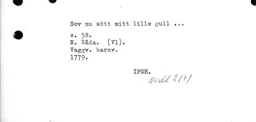 //// \ //// Sov nu sött mitt lille gull s. 58' //// N. Råda. (Yl). Yaggv. barnv. //// 1779- //// IFGH. ////