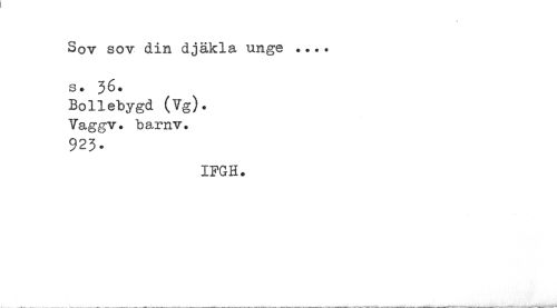 //// \ //// Sov sov din djäkla unge ... s. 36. //// Bollebygd (Vg). Vaggv. barnv. //// 923. //// IFGH. //// .___.___-___*--.---_---—_---r---—---~---~---—-- ////