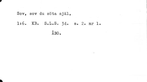 //// Sov, sov du söta själ, ! //// 1*6. KB. S.L.S* 34. s. 2. nr 1. //// ÅBO. //// k ////