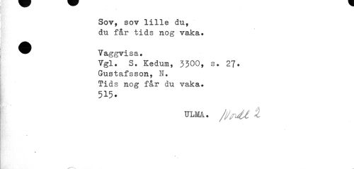 //// Sov, sov lille du, //// du får tids nog vaka# //// ^^ Vaggvisa» //// Vgl. S. Kedum, 3300, s. 27. //// Gustafsson, N. Tids nog får du vaka* //// 515- //// ULM ? /l/fuU ^ //// \ ////