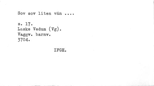 //// Sov sov liten vän . //// s • 17. //// Laske Vedum ( Vg)? Vaggv. barnv. //// 3704. //// IFGH. ////