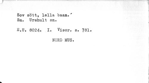 //// Sov sött, lella baan.' Sm. Urshult sn. //// E.U. 8024. .I. Visor. s. 78I. //// NOHD MUS. //// r //// : ) //// | i ////