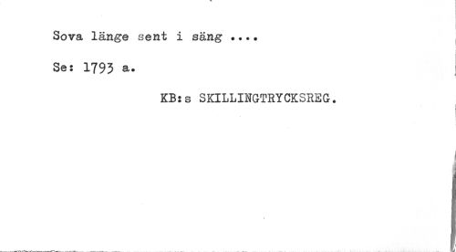 //// Sova länge sent i säng •.. • , //// Se: 1795 a. //// M //// KB:s SKILLINGTRYCKSREG. //// I //// 1 //// { //// I j ////