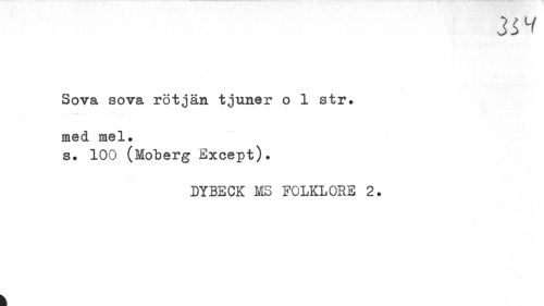 //// Sova sova rötjän tjuner o 1 str» med mel» //// s» 100 (Moberg Except). //// DYBECK MS FOLKLORE 2. //// i ////