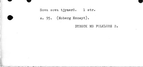 //// Sova sova tjymerö. 1 str» ^^ s# 95* (Moberg Except). //// DYBECK MS FOLKLORE 2. ////