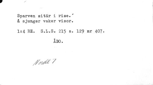 //// Sparven sitär i rise.' å sjunger vaker visor. //// 1:4 RE. S.L.S. 215 s. 129 nr 407. //// ÅBO. ////