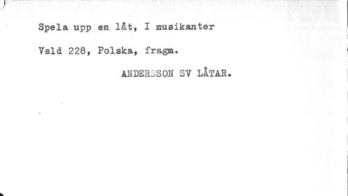 //// Spela upp en låt, I musikanter //// u r //// Vsld 228, Polska, fragm. i //// ANDERSSON SV LÅTAR. //// I //// I ¦ //// f I ////
