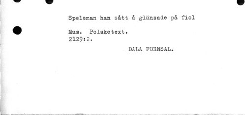 //// Speleman han sått å glänsade på fiol //// Mus. Polsketext. 2129:2. //// DALA FORNSAL. //// Bi ////