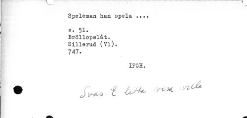 //// Speleman han spela ... s. 51. //// Bröllopslåt. Sillerud (Vi). //// 747. //// IFGH. ////