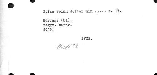 //// Spinn spinn dotter min ,... s. 37. //// Höringe (Hl). Vaggv. barnv. 4038. //// IFGH. //// /tindtn ////