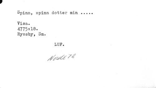 //// Spinn, spinn dotter min ... //// Visa. //// 4775:18. Ryssby, Sm. //// LUF. ////