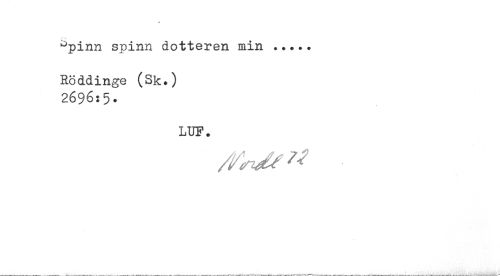 //// Dpinn spinn dotteren min ... //// Röddinge (Sk.) 2696:5. //// LUP. ////