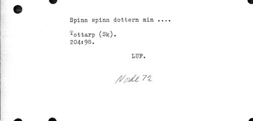 //// Spinn spinn dottern min ... //// '^ottarp (Sk). 204:98. //// LUF. ////