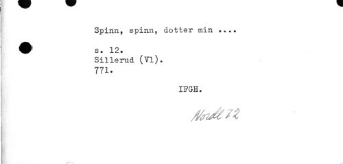 //// Spinn, spinn, dotter min ... Sillerad (Vi). //// 771. //// IFGH. ////