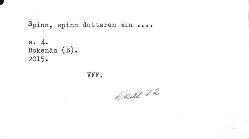 //// i //// Spinn, spinn dotteren min //// s. 4* //// Bokenäs (B). //// 2015 • //// VFF. //// i //// i ////