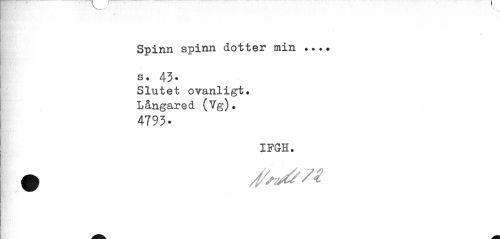 //// Spinn spinn dotter min ... s. 43* //// Slutet ovanligt. Långared (Vg). //// 4793- //// IPGH. ////