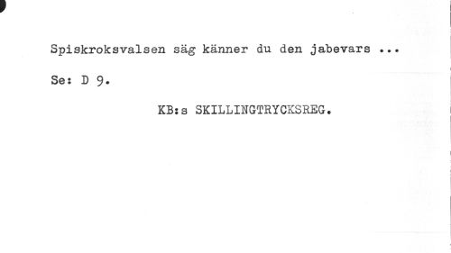 //// Spiskroksvalsen säg känner du den jabevars //// i //// Se: D 9. //// KB: s SKILLINGTRYCKSREG. i //// 1 ////