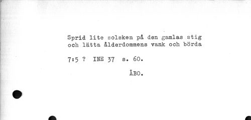 //// Sprid lite solsken på den gamlas stig och lätta ålderdommens rank och börda //// 7:5 ? INE 57 s. 60. //// ÅBO. ////
